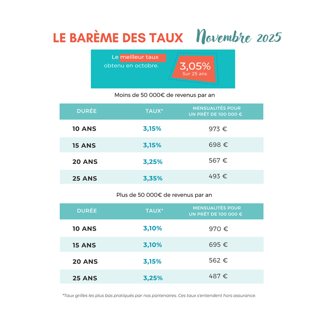Le meileur taux obtenu en octobre : 3,05 % sur 25 ans