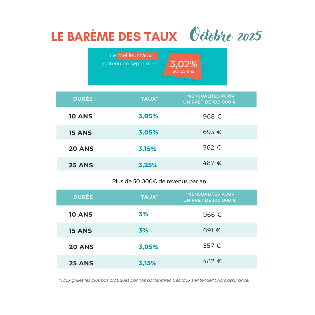 Le meileur taux obtenu en septembre : 3,02 % sur 25 ans